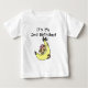Um macaco-menina de uma banana amarela grande em T-shirts de segundo aniversário, fatos-chave, cartas, autocolantes, ímanes, sacos de tote e muito mais.