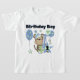 Um macaco-menino rodeado de estrelas, balões, presentes de aniversário e texto que diz "Aniversário Garoto 2" em t-shirts de segundo aniversário macaco, fato físico, sacos de tote, autocolantes, cartões e muito mais.