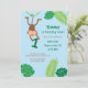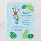 Este belo e colorido convite de aniversário é ideal para celebrar o primeiro aniversario do seu filho. Ele apresenta um personagem macaco pendurado em uma braçadeira e segurando o número de aniversário. Deixa decorar a borda. Esta design divertida é perfeita para uma criança ativa que gosta de se divertir.