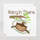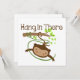 Um macaco giro balança de um galho perto da cauda e o texto marrom lê "Hang In Ali", um excelente de macaco giro para crianças e adultos que amam animais, especialmente macacos! O macaco prende-se com T-shirts, canecas, fatos-chave, cobertores, bíblias, panos-burpa, ímanes, adesivos, bolsas, cartões, autocolantes, correntes-chave, guardas, e muito mais!