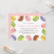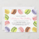 Convide convidados para a sua festa de aniversário em francês ou em Paris em estilo com os nossos elegantes convites de aniversário Macarons franceses! Os convites apresentam uma borda de belos macrões aquosos em tons de rosa, verde limão, roxo, amarelo e marrom. Personalize os convites adicionando o nome, a idade e os detalhes da festa da aniversariante.