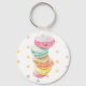 Ilustração de uma torre delicadamente equilibrada de macarões cor-de-rosa, verdes, laranja, castanho e amarelo. Uma especialidade francesa e um cartão ou presente delicioso para um amigo especial ou qualquer pessoa que ame coisas doces.