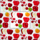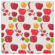 Este tecido tem a arte da maçã de Kristie Hubler (eu), verde, ouro e vermelha, e fatias, com amoras-framboesas, em repetição