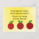 Um fundo sombreado em amarelo apresentando três deliciosas maçãs vermelhas. Uma mensagem inspiradora de professor.