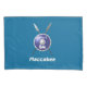 Uma representação do escudo de um Maccabee e duas lanças. O escudo é enfeitado por um leão e o texto lendo "Yisrael" (Israel) no alfabeto paleohebraico. O texto inglês "Maccabee" também é exibido. Os Macabeus eram rebeldes judeus que libertaram Judeia do jugo do Império Seleúcio. Chanukkah não é apenas um festival de inverno-médio com velas e iguarias fritas. celebra uma vitória militar, e garante a liberdade religiosa, sobre o Império Seleúcio. Além disso, a revolta foi uma guerra civil envolvendo aqueles judeus que eram leais ao G-d e aqueles que tinham adotado o Hellenismo dos Seleucids.