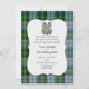 O convite de casamento do clã escocês MacNeil feito no padrão clássico de xadrez azul-céu, cinza, preto, amarelo e verde-tartã, com uma área decorativa de tom prateado branco. Gráficos de duas cabeças de unicórnio com um punho entre elas, decoram o topo do convite. Personalize o texto personalizado para se adequar ao seu casamento temático em terras altas.