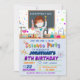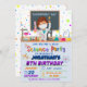 Surpreenda seus hóspedes com esse colorido convite de aniversário de ciência com elementos científicos como ferramentas experimentais e um cientista está pensando em fazer um experimento, pontos coloridos são para o fundo. Basta adicionar os detalhes do seu evento neste modelo fácil de usar para torná-lo um convite simples Consulte a loja para obter itens correspondentes