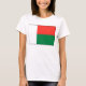 A frente desta t-shirt exibe corajosamente a bandeira malgaxe com a sua branca distinta, vertical, ao lado das bandas horizontais vermelhas e verdes. Isso é combinado atrás por um mapa atraente de Madagascar.