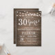 Rustic Surprise aniversário de 30 anos Invitation Wood Background com luzes de cordas. 13 15 16º 18º 20 21 rua 30 40º 50º 80 de 60º 70 de 100º, qualquer idade. Aniversário Adulto. Mulher ou Festa de aniversário masculina.