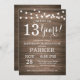 13 Rustic Birthday Invitation Wood Background com luzes de cordas. 13 15 16º 18º 20 21 rua 30 40º 50º 80 de 60º 70 de 100º, qualquer idade. Aniversário Adulto. Mulher ou Festa de aniversário masculina.