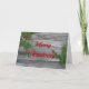 Este Cartão de Natal de Estilo de País apresenta o texto Feliz Natal em um Pinho e Pau de proteção.
