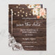 ** SATIN PAPER É PAPEL FINO. ATUALIZE O PAPEL PARA OBTER UM PAPEL MAIS ESPESADO. TEM UMA OPÇÃO PARA ENVELOPES. *** Economize dinheiro em convites formais com este convite menor que tem uma opção para envelopes. Prepare seus convidados para o maravilhoso casamento com seu convite de "Wood", "Lace", "String Lights", "Pink and Peach", com sua foto "Quer uma versão maior" do "card stock"? Veja a coleção Salvar Data para cartões. https://www.zazzle.com/collections/wood_lace_blush_pink_peach_floral_wedding-119768462665816739?rf=238937196885903396