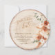 Anuncie seu dia especial com este rústico grão cortado de madeira redonda salve o cartão de data, projetado para se assemelhar a uma fatia de tronco de árvore com anéis de madeira naturais. Apresentando detalhes florais de aquarela em teracotta quente e tons boho, este anúncio de casamento único e criativo é perfeito para casamentos de campo, celeiro, fazenda, ao ar livre e florestas. A forma redonda adiciona um toque verdadeiramente engajador e eterno, definindo o tom para uma celebração romântica e inspirada na safra. Quer você esteja planejando um casamento boho-chic, rústico ou com temas da natureza, este grão de madeira salva o cartão de data belamente mistura charme orgânico com elegância.