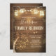 Divertimento do ♥ A e convite rústico da reunião de família. Luzes rústicas da madeira e da corda com uma árvore genealógica.