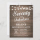 O convite rústico do aniversário do 70 com corda ilumina o fundo de madeira. Festa de aniversário da mulher. Setenta e fabuloso. Alguma idade. Para uma personalização mais adicional, clique por favor "personalizam-no" botão e usam-nos nossa ferramenta de design para alterar este modelo.