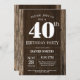 Convite rústico do aniversário de 40 anos com fundo de madeira rústico. País retro do vintage. Aniversário adulto. Aniversário masculino dos homens ou das mulheres. Miúdos menino ou senhora Adolescente Adolescente Bday Convite da menina. 13o 15o 16o 18o 20o 2ø 30o 40th 50th 60th 90 100th do 80 do 70. Alguma idade. Para uma personalização mais adicional, clique por favor "personalizam-no" botão e usam-nos nossa ferramenta de design para alterar este modelo.