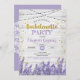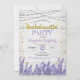 Todos os textos são editáveis (exceto o ouro "Bachelorette"). Linda lavanda de aquarela sobre fundo de madeira rústica, com confete dourado e luz romântica de cordas. Decorado com o padrão de rendas na parte de trás. Consiga este belo convite elegante agora!