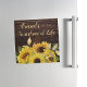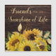 Cartão de saudação magnético para um amigo com um design de madeira marrom-escuro rústico, decorado com girassóis amarelos brilhantes e com uma letra branca, "Amigos são o sol da vida."