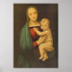 Esta pintura está exposta no Palazzo Pitti. Mostra a Virgem Maria segurando Jesus bebê em seus braços. Ambos têm halos fracos acima de suas cabeças. Eles são pintados contra um fundo escuro de tal forma que o espectador está completamente focado em Mary e Jesus. Madonna está vestida com uma manta azul profunda e um vestido vermelho. Ela está vestindo um véu na cabeça e tem cabelo louro-ouro. Sua cabeça está levemente inclinada para a frente e ela parece estar em seus pensamentos. Ela olha para baixo com as pálpebras metade fechadas. Observe que você mal pode ver suas sobrancelhas como mulheres durante esse tempo tinham o hábito de remover suas sobrancelhas. O bebê Jesus está sentado em segurança na mão esquerda da mãe. Ele parece um bebê saudável e gordinho e tem as mãos no peito e no ombro de Mary. Ele está vestindo um pano de cor clara ao redor da cintura. Ele olha pacificamente na direção do espectador. Ele parece muito confortável nas mãos da sua mãe e não tem medo de olhar para o mundo exterior. Esta Madonna de Raphael pode parecer uma pintura simples, mas é altamente admirada por ser harmoniosa e pacífica e pelo amor materno que ela representa. Ela lembra a muitos como sua própria mãe deve tê-los segurado como um bebê ou como eles tinham seus próprios bebês. Uma discussão mais detalhada desta pintura pode ser encontrada em https://www.tripimprover.com/blog/madonna-of-the-grand-duke-by-raphael.