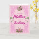 Um cartão de aniversário bonito para uma mãe. Uma traria elegante em conjuntos cor-de-rosa das quatro rosas cor-de-rosa. O fundo é um padrão rosa pálido de flores. Um cartão adorável para mandar para uma mãe no seu aniversário.