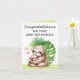 Compartilhe seus parabéns sinceros e dê as boas vindas ao novo bebê com nosso adorável cartão de saudação de Sloth da Mãe e Bebê, neutro em sexo! Com uma doce mãe de preguiça com bebê, folhas tropicais e corações brancos na frente, personalizável com o nome do bebê, esta carta é a forma perfeita de celebrar a nova chegada. Nas costas, desfrute de um charmoso padrão tropical. Com dentro de espaço para sua própria mensagem pessoal, é uma adição cuidadosa e bonitinha a qualquer presente de boas-vindas ou decoração infantil.