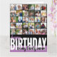 Crie seu próprio cartão de aniversário feliz. O modelo de foto está pronto para que você adicione 31 de suas fotos favoritas, 30 das quais são exibidas em formato quadrado / instagrama em uma simples colagem de fotos no estilo grade e a principal está em formato de retrato digno de enquadramento no dentro. A frente do cartão de aniversário é escrita com a tipografia e a escrita de pincel modernas e sobredimensionadas. Atualmente, lê "feliz aniversário para minha adorável mãe" com blocos coloridos estilizando em lavanda, preto e branco. Você pode editar o texto personalizado na frente e também pode personalizar o dentro de saudação.