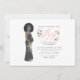 Mãe negra de cabelos escuros para ser convidada para chá de fraldas. Linda ilustração de uma mãe para estar com pêssego e detalhes florais.