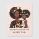 Belo cartão de saudação de uma mãe e filha negras com flores vibrantes no cabelo, celebrando amor, família e herança. Um design que honra o vínculo entre mãe e filho. Ideal para o Dia das Mães, aniversários, ou como um presente significativo para mães, filhas e famílias que apreciam a união.