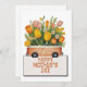 Um cartão de Dia de as mães refinado com um tema floral. Apresenta um grande buquê de flores de primavera, compreendendo tulipas, daffodils e margaridas. A carta diz "Mãe, Obrigado, Dia de as mães Feliz" na frente, na tipografia moderna. A parte traseira da placa tem espaço para adicionar sua mensagem para torná-la mais exclusiva. Veja na nossa loja os produtos correspondentes.