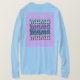 Você pode adicionar os nomes dos seus filhos a esta camiseta-mãe. Esta é uma camisa de manga longa azul-clara básica. A camiseta é uma camiseta-mãe. As palavras mama estão em texto quatro vezes verticalmente na frente e atrás da camiseta. Esta é uma camiseta infantil de uma mulher. Ela pode digitar o nome de cada criança em uma das mamas na camisa. Você pode dar esta camisa a alguém para Dia de as mães, um feriado em maio.
