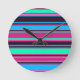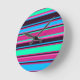 Adicione um pop de cor a qualquer espaço com este moderno relógio de parede listrado! Com riscas horizontais em magenta, aqua e azul, esta design vibrante traz energia lúdica para cozinhas, escritórios ou dormitórios. Um presente perfeito para amantes de cores ou para quem gosta de decoração ousada e moderna.