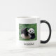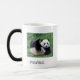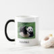 O urso de panda pequena feliz veste acima seu café ou lanche da manhã e pôr um sorriso sobre sua cara!