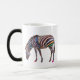 Isto caneca morphing relevante caracteriza uma pintura digital de uma zebra bonita. As listras na zebra são pintadas em brilhantes, cores do arco-íris. Nossa caneca da zebra seria o presente perfeito para amantes deste animal bonito, e as pessoas que adore cores e padrões brilhantes. Nós colocamos as zebras em uma caneca morphing que trouxesse as imagens à vida vibrante em que você adiciona o líquido quente mas você pode facilmente mudar o estilo da caneca ao terno. Você pode igualmente personalizar a caneca adicionando seu próprio texto.