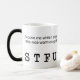 Uma caneca cor-morphing que revele polidamente sua necessidade por o tempo quieto. E mesmo quando você se tornou disgusted com seu café queimado e encontrou que você não pode beber todo o porão desagradável, os resíduos manterão a parte inferior meio vazia da caneca morna bastante para indicar esse STFU da mais alta importância. Inteligência irritadiço!