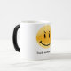 caneca morphing que diz o sorriso e o sup afastado com uma cara dos desenhos animados sobre.