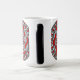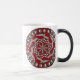 Este design de círculo concêntrico contém camadas de padrões geométricos que se assemelham a engrenagens que você pode encontrar em máquinas modernas ou até alienígenas, em tons de vermelho e cinza. Estão disponíveis outras cores e estilos de caneca, incluindo canecas de viagem e canecas de cerveja.