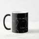 A caneca Morphing com corações no fundo preto e em "ela não é nenhuma surpresa…. Eu te amo" mensagem que aparecer quando líquido quente na caneca.