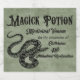 Magick Potion para seu armário de bebidas medicinais. Texto diz Magick Potion, veneno medicinal para o tratamento de manchas infantis e disfunção substitutiva com ilustração vintage de um cobra. Pode ser óleo de cobra, mas quem pode dizer?
