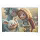 Ein liebevoll gestaltetes Fantasiebild mit einer fröhlichen Kindergestalt in Tierkostüm, einem süßen, kuscheligen Wesen und einem charmanten Fabeltier – umgeben von einer blühenden Wiese im sanften Licht. Ideal für Kinderzimmer, als Poster, Postkarte oder für niedliche Geschenkartikel.