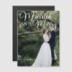 Linda caligrafia branca lendo Casado e Feliz sobre sua fotografia de casamento de cheio para um belo e novo ímã de cartão de feriado. Este cartão magnético natalício de casal apresenta um elegante script cursivo branco no topo.