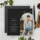 Comemore ao estilo com esses convites de graduação magnética minimalista em preto e branco, comemorando a classe de 2022. Adicione as suas informações personalizadas juntamente com a sua fotografia escolhida. convites para excelentes e guardas para celebrações de segundos graus, universidades e/ou universidades.