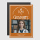 Este cartão magnético laranja personalizado de anúncio de graduação em escolas médicas osteopáticas para um DO ou um médico osteopata apresenta um símbolo médico osteopático caduceus e sua foto de faculdade para a classe de 2025. Personalize com o seu ano de graduação em branco para um excelente de ímã de fotografia personalizado de formando universitário.
