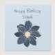 Design de Flor Azul na Placa Magnet de Aniversário. Personalize sua saudação com o nome da pessoa.