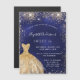 Um moderno, na moda e glamouroso ímã de convite para uma doce festa de aniversário 16, 16. Um fundo azul real, decorado com falso brilho, faíscas. Personalize e adicione seu nome e detalhes da festa.