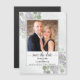 Este belo cartão magnético foi projetado para dar aos seus amigos e família uma maneira fácil de se lembrarem de sua próxima data de casamento. O design apresenta um design rústico com sua foto em um quadro branco de folhas de eucalipto pintadas à mão e ranhuras de flores de lavanda em tons de verde-sábio e roxo com caligrafia de escrita antiga lendo a data.
