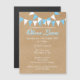 BEBÊ BUNTING BLUE BAPTISM CHRISTENING CONVITE. Este bonito batismo, batismo rústico, batizante ou primeiro convite para comunhão apresenta um fundo estilo kraft-paper, bunting azul e branco e uma linda caligrafia com uma sombra azul. Projetado pela Pure Piglet© em www.zazzle.com/purepiglet*.