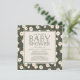 Convide seus convidados chás de fraldas no estilo quic sul com nossos convites florais para chuveiros de bebês. Cartões de convite florais bonitos apresentam um padrão de fundo de flores brancas de magnólia e folhas verdes e cruéis em fundo de cinza castanho-enfumaçado. Adicione os detalhes da sua festa na carta verde do caçador de chic.