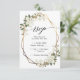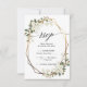 Este é um belo cartão RSVP de casamento com design floral de flor de magnólia de aquarela com quadro de ouro geométrico.