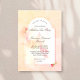 Tons cor-de-rosa-amanhecer e damascos se lavam sobre este convite de sonho de aquarela. Lindas pinturas botânicas da Magnolia florescem em tons de rosa. Muito romântico, mas moderno e em tendência, para um casamento rústico com amigos e familiares. O lado frontal é uma floração totalmente aberta com o monograma inicial do casal, O inverso guarda o convite dentro de um arco com botões delicados e uma lavagem de aquarela.