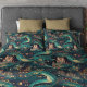 Traga aventura e intrigação para o seu quarto com esses Majestosos Dragões Teais e Cobrir de Travesseiros da Aldeia. Este padrão vibrante é certamente o ponto de conversa de qualquer sala. Apresenta dragões negros voando sobre uma vila asiática brilhando contra um fundo escuro.